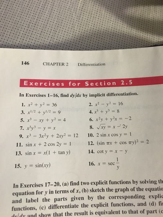 Solved Chapter 2 Differentiation Exercises For Section 2 Chegg Com